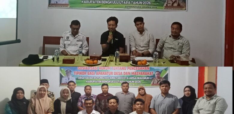 Rajawalipublik.com,- ARGA MAKMUR_ – Pemerintah Desa Datar Ruyung, Kecamatan Kota Arga Makmur, Kabupaten Bengkulu Utara menggelar Sosialisasi Hukum Tentang Pencegahan Tindak Pidana Korupsi (Tipikor) bagi aparatur desa dan masyarakat. Kegiatan ini menghadirkan narasumber dari Unit Tipikor Polres Bengkulu Utara.