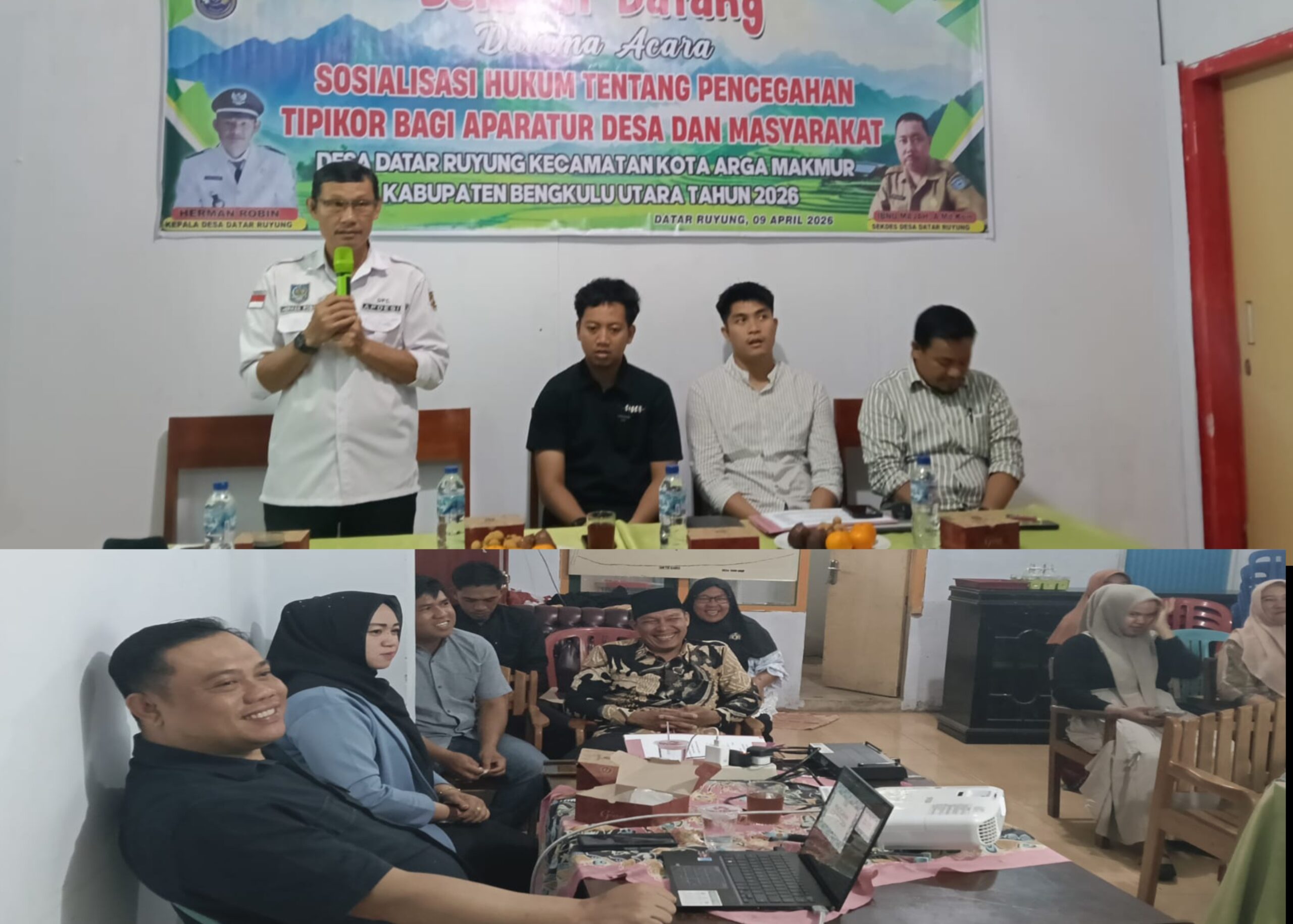Rajawalipublik.com,- ARGA MAKMUR_ – Pemerintah Desa Datar Ruyung, Kecamatan Kota Arga Makmur, Kabupaten Bengkulu Utara menggelar Sosialisasi Hukum Tentang Pencegahan Tindak Pidana Korupsi (Tipikor) bagi aparatur desa dan masyarakat. Kegiatan ini menghadirkan narasumber dari Unit Tipikor Polres Bengkulu Utara.